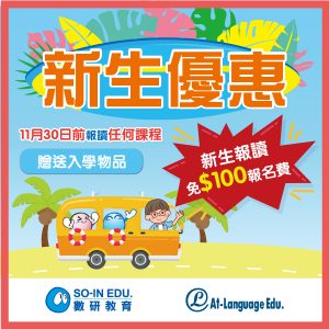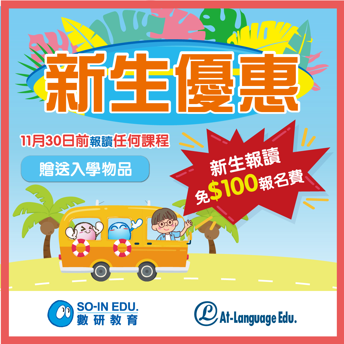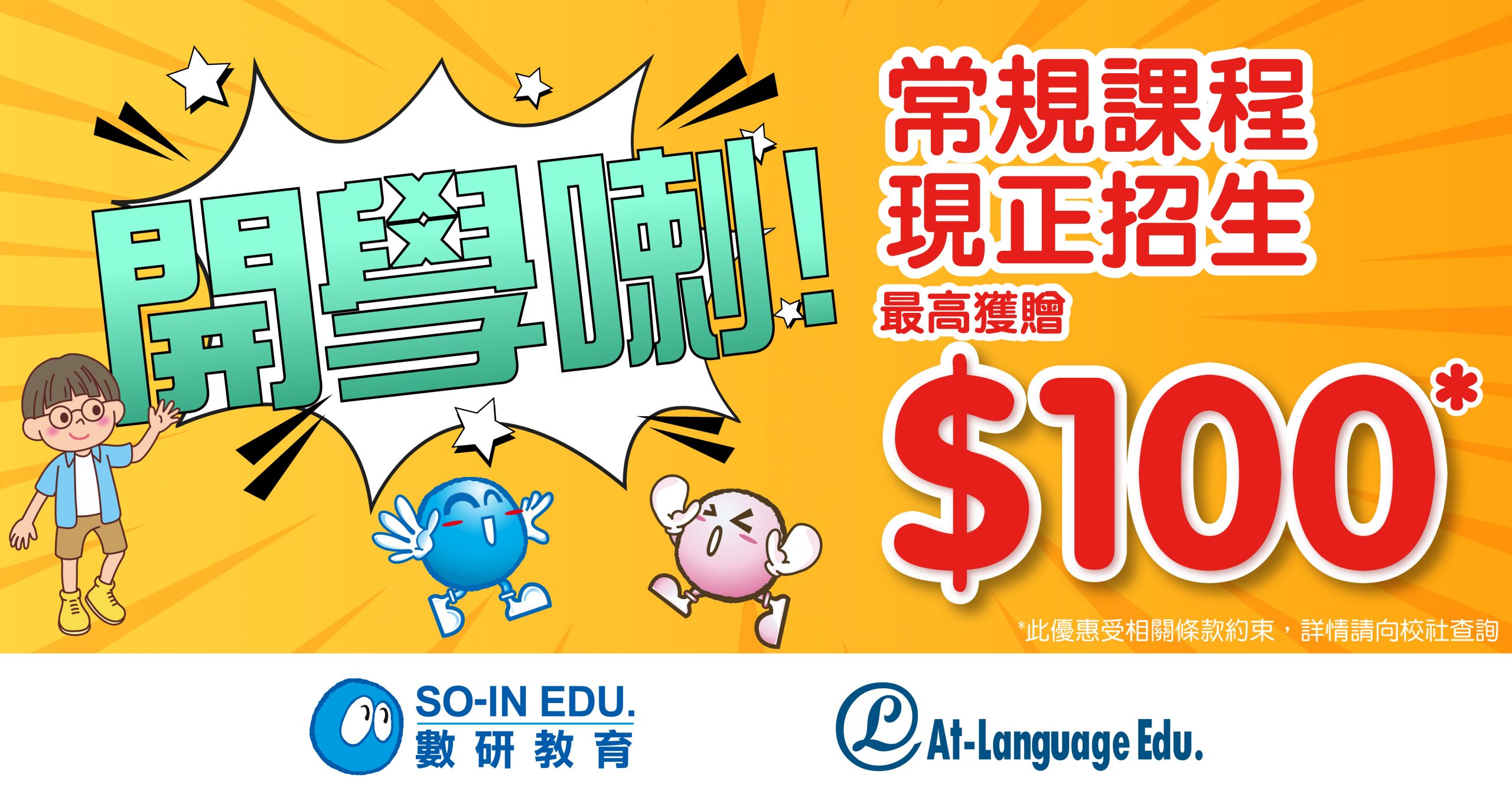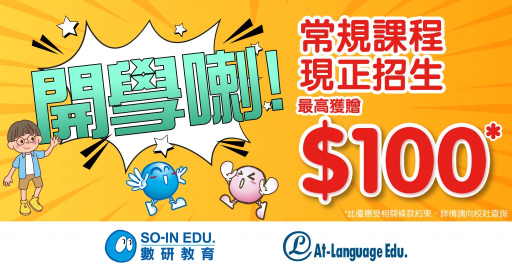 暑假還有大半個月,新學年就正式開始。經過個多月的暑假,是時候準備好心情回校上課。數研教育 X At-Language Education已經做好準備同各位同學仔一齊面對新學年,中小學的常規課程均特別推出最新開學優惠: